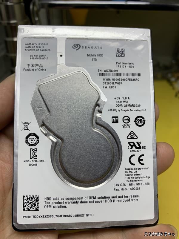 硬盘型号:ST2000LM007-1R8174 SN:WDZQL591 FW:EB01 电路板号:100835923