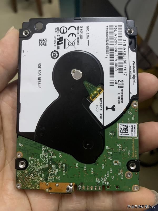 故障现象:WD 2T超薄原装移动硬盘,通电声音不正常,电脑不识别。