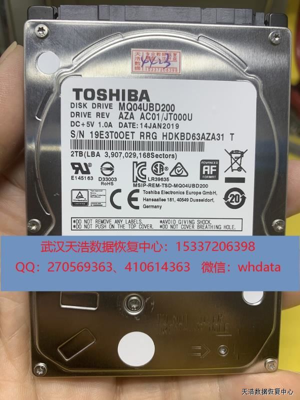 硬盘型号:TOSHIBA MQ04UBD200 SN:19E3T0OET FW:JT000U0N 电路板号:G0039A