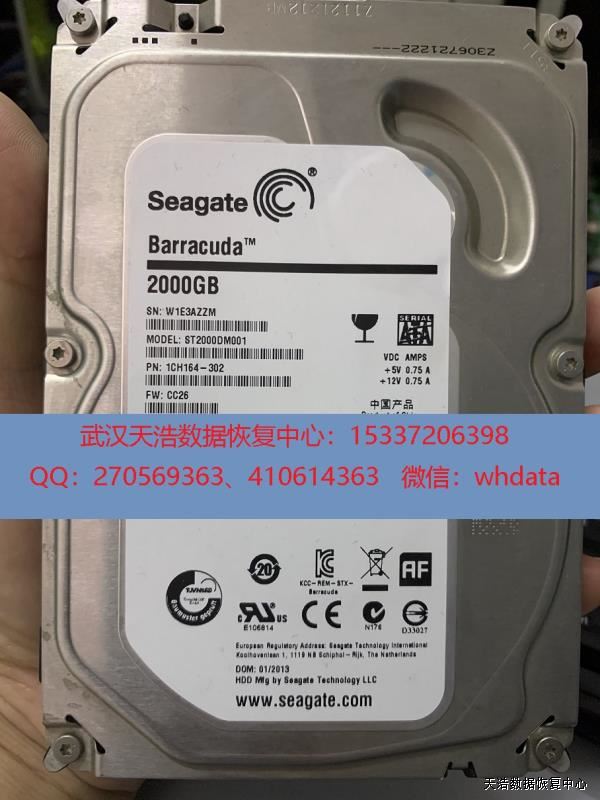 硬盘型号:ST2000DM001-1CH164 SN:W1E3AZZM FW:CC26 电路板号:100687658