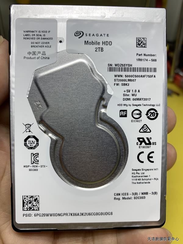 故障现象:希捷2T超薄原装移动硬盘,通电敲盘。
