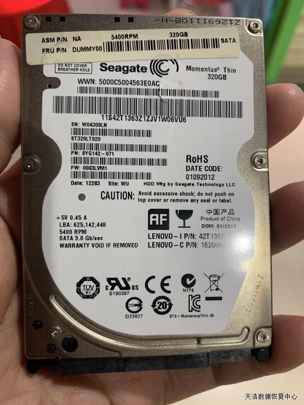 硬盘型号:ST320LT020-9YG142 SN:W04309LN FW:0003LVM1 电路板号:100625000