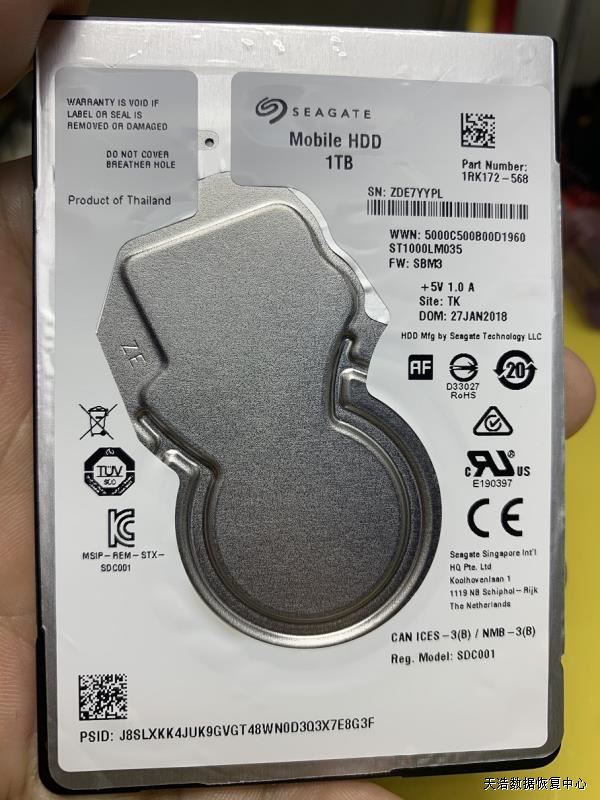 硬盘型号:ST1000LM035-1RK172 SN:WDZ5SYSH FW:SBM3 电路板号:100809471