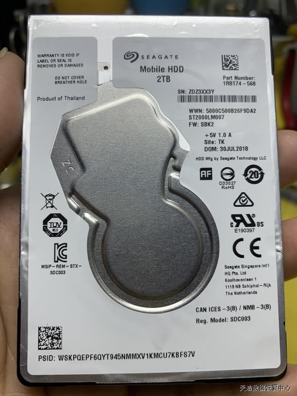 故障现象:希捷2T超薄原装移动硬盘,通电敲盘。