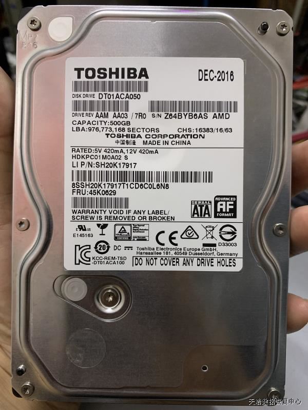 故障现象:东芝500G台式机硬盘,突然不能读盘。