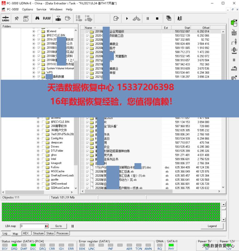 解决方案:收到硬盘后,我们接专业的数据恢复工具PC3000 UDMA Express上,检测发现是磁头问题,在无尘环境更换兼容的磁头,再接到PC3000上,通电硬盘正常认盘,数据区也能正常访问了。DE镜像,成功恢复客户硬盘内的全部数据。