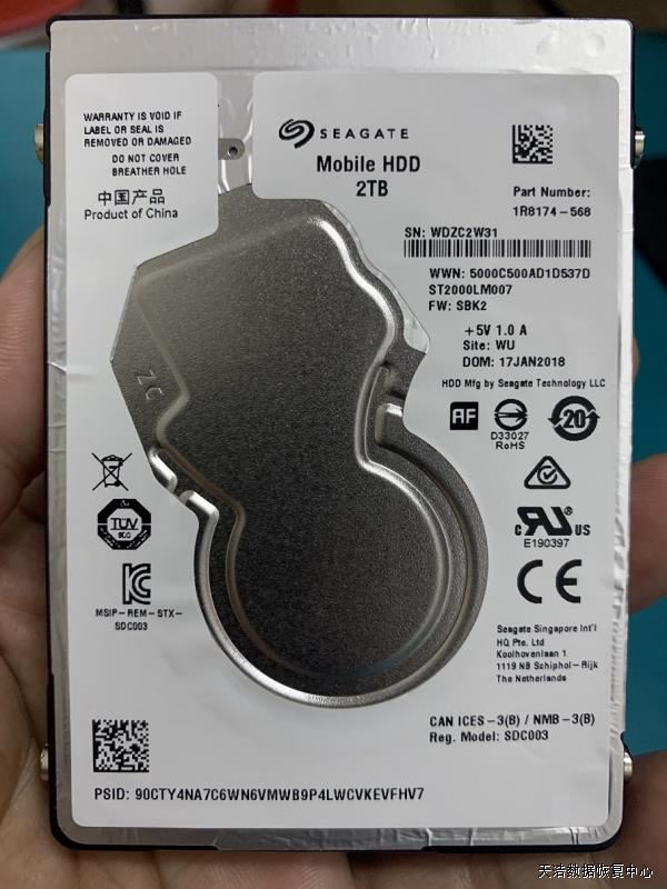 故障现象:希捷2T超薄原装移动硬盘,通电敲盘。