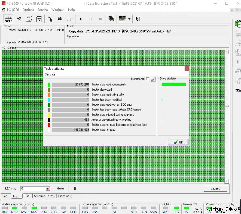 解决方案:收到硬盘后,我们使用专业的SSD恢复工具ACE PC3000 SSD,处理固件问题,虚拟重建编译器,用PC3000 DE虚拟镜像,成功恢复客户硬盘内几乎全部数据。