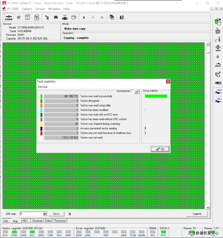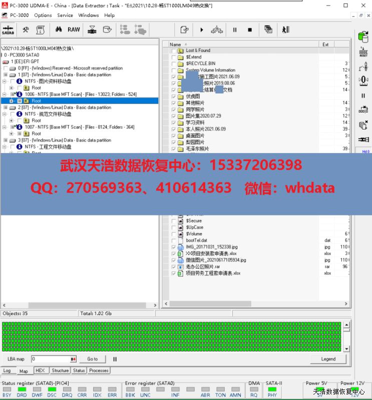 热交换修复固件问题后,硬盘再断电通电,正常认盘,镜像,成功恢复硬盘内几乎全部数据!
