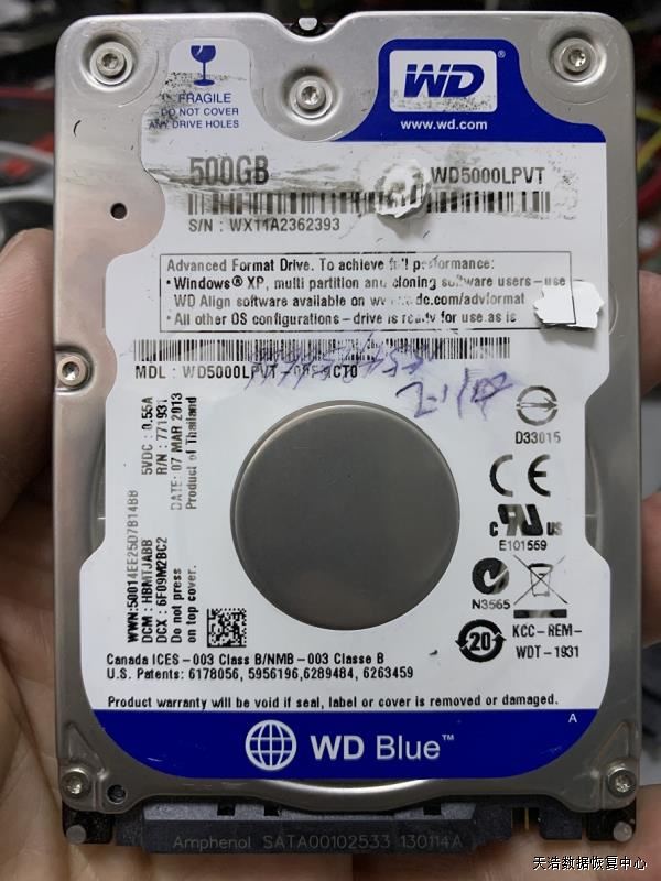 硬盘型号:WD5000LPVT-00FMCT0 SN:WX11A2362393 FW:5000T 电路板号:771959-000