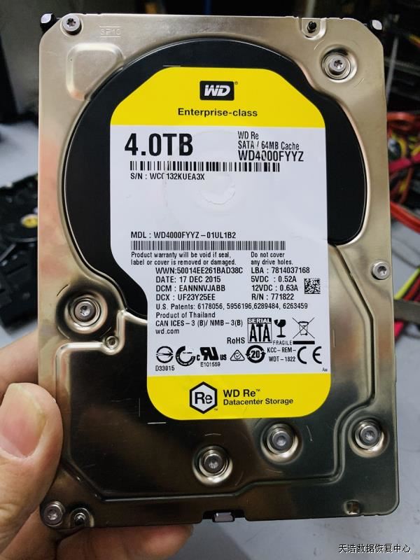 硬盘型号:WD4000FYYZ-01UL1B2 SN:WCC132KUEA3X FW:700TG 电路板号:771822-005