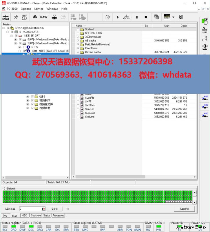原板处理固件后,硬盘正常认盘,数据区前后都能正常访问,DE镜像,数据完美恢复。