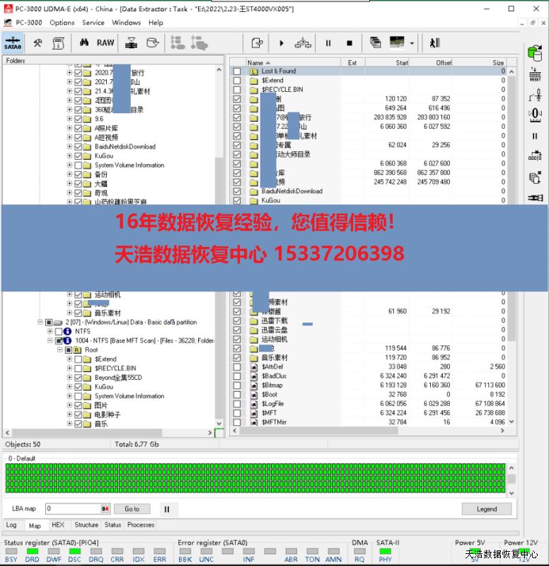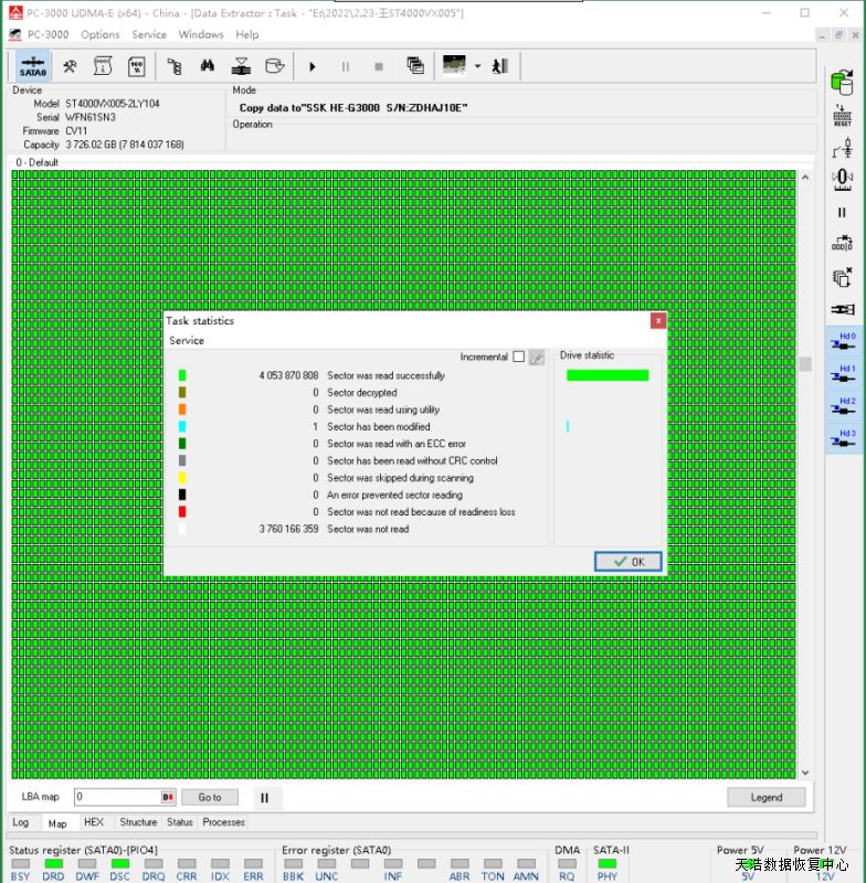 原板处理固件后,硬盘正常认盘,数据区前后都能正常访问,DE镜像,数据完美恢复。