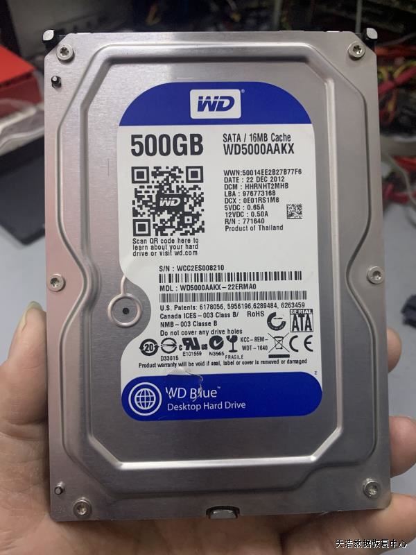 硬盘型号:WD5000AAKX-22ERMA0 SN:WCC2ES008210 FW:5001E 电路板号:771640-003