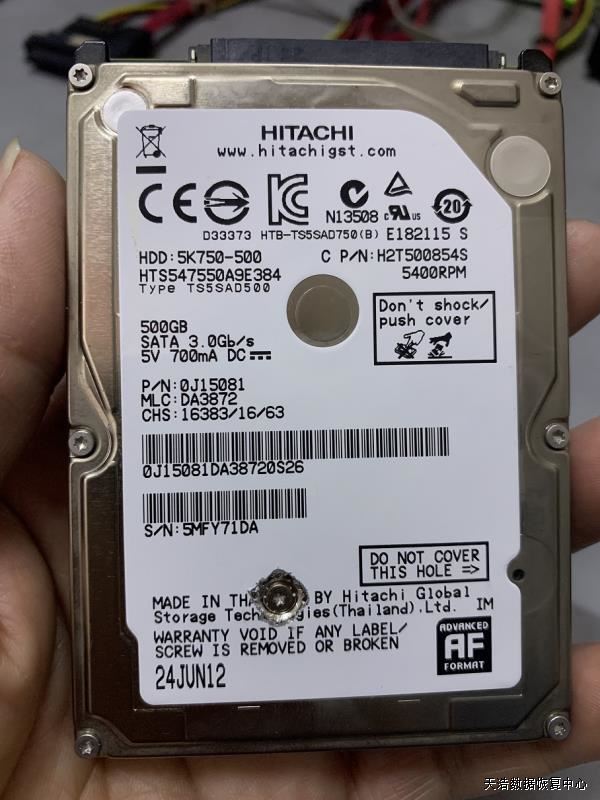 故障现象:日立500G的笔记本硬盘,通电敲盘。
