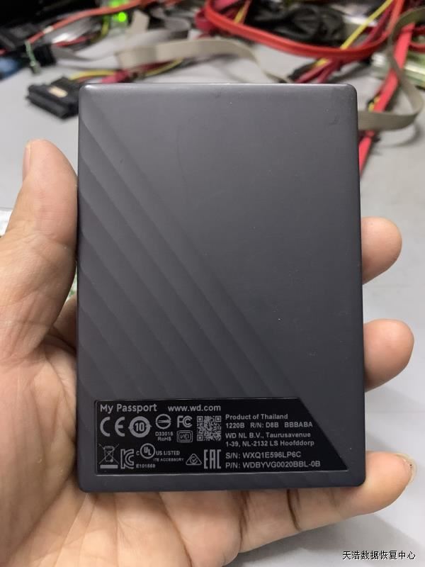 故障现象:WD My Passport 2T超薄原装移动硬盘,摔过,通电敲盘。