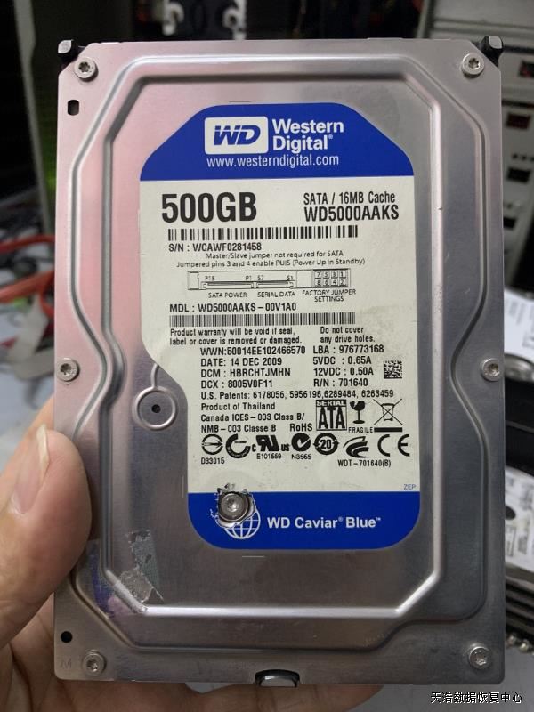 硬盘型号:WD5000AAKS-00V1A0 SN:WCAWF0281458 FW:110058 电路板号:771640-003