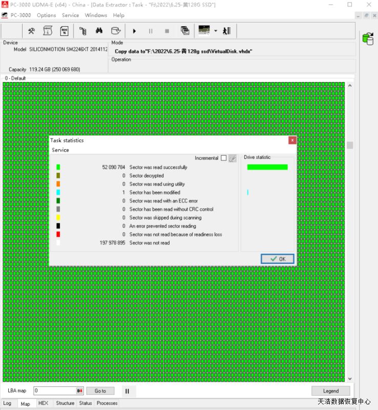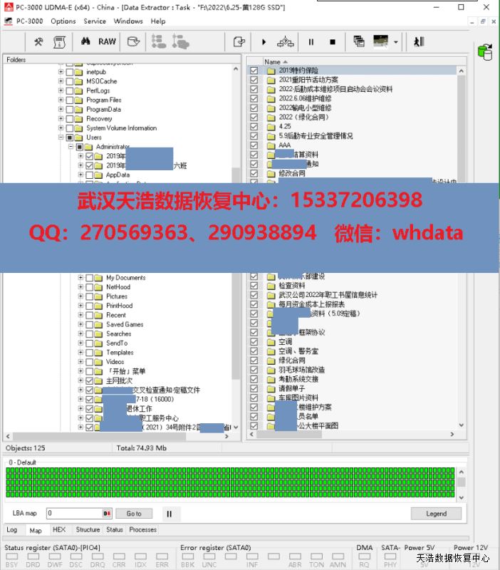 解决方案:收到硬盘后,我们使用专业的SSD恢复工具ACE PC3000 SSD,短接通电,处理固件问题,虚拟重建编译器,用PC3000 DE虚拟镜像,成功恢复客户硬盘内全部数据!