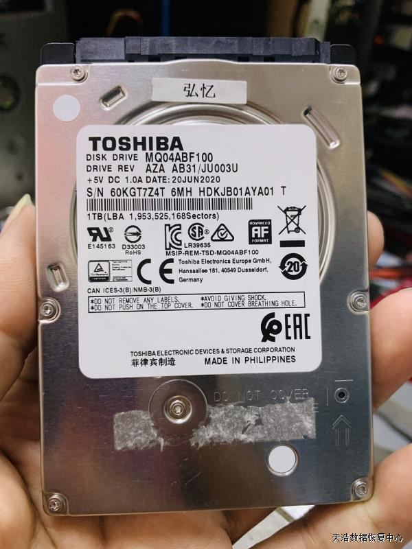 故障现象:东芝1T超薄笔记本硬盘,通电敲盘!