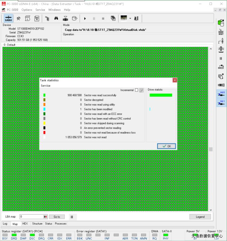 解决方案:收到硬盘后,接到数据恢复工具ACE PC3000 UDMA EXPRESS上,修复固件问题后,通电硬盘正常认盘,DE分头镜像,发现0头不良,在无尘环境更换兼容的磁头,通电硬盘认盘,再镜像,成功恢复客户硬盘内几乎全部数据!