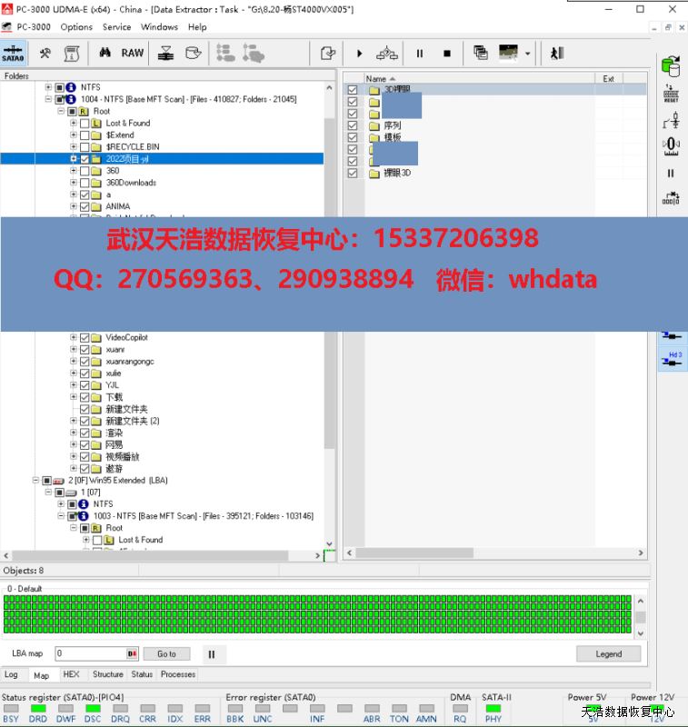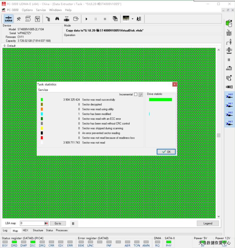 原板处理固件后,硬盘正常认盘,数据区前后都能正常访问,DE镜像,数据完美恢复。