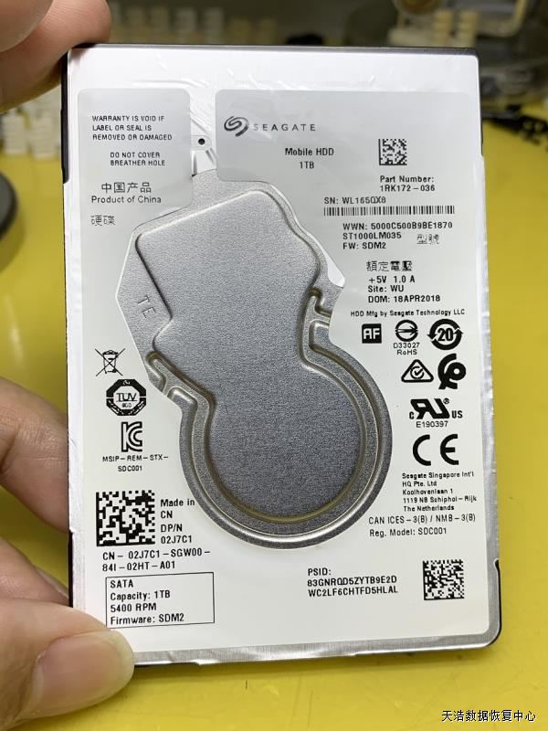 硬盘型号:ST1000LM035-1RK172 SN:WL165QX8 FW:SDM2 电路板号:100781943