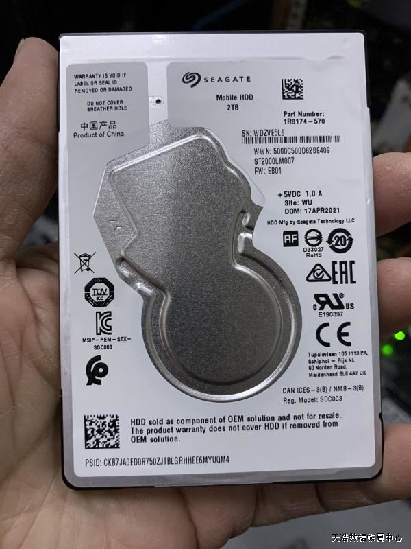 故障现象:希捷2T超薄原装移动硬盘,通电敲盘!