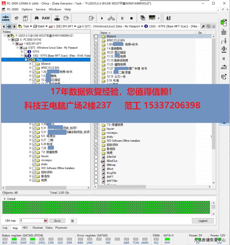 故障现象:WD My Passport 2T原装移动硬盘,摔过,通电敲盘。