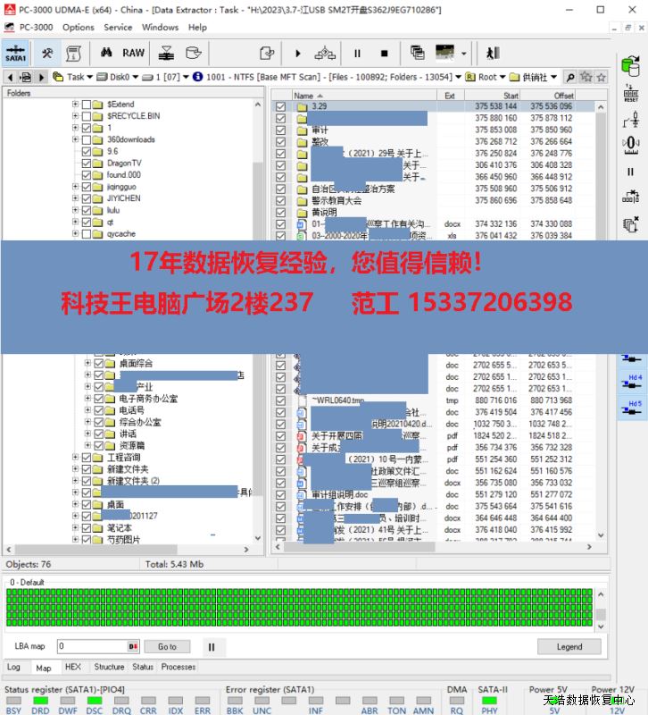 解决方案:收到硬盘后,我们在无尘环境更换盘腔,再接到数据恢复工具PC-3000 UDMA Express上,硬盘正常认盘,DE分头镜像,最后硬盘内4百多G的数据均完美恢复!