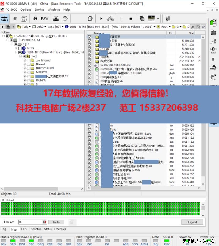 解决方案:收到硬盘后,我们在无尘环境更换兼容的磁头,接到数据恢复工具PC3000 UDMA EXPRESS上,通电认盘,DE镜像,成功恢复客户硬盘内绝大部分数据。