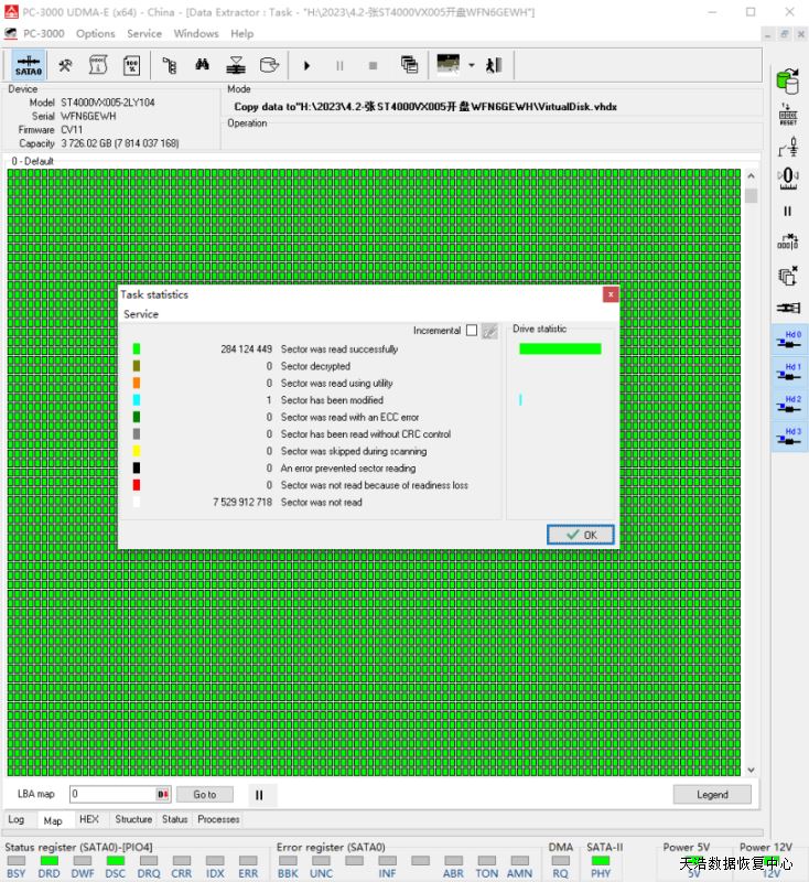 故障现象:硬盘通电不认盘,给同行远程检测,发现是磁头问题,同行跟客户沟通报价后,发过来让我们帮忙开盘恢复。