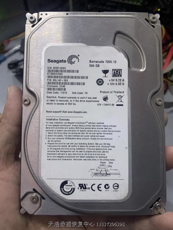 硬盘型号:ST500418AS SN:9VMTJXWC FW:CC46 电路板号:10535704