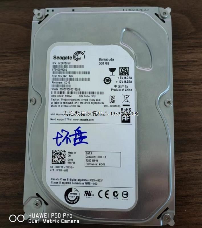 硬盘型号:ST500DM002 SN:W2AFZSW1 FW:KC45 电路板号:10535704