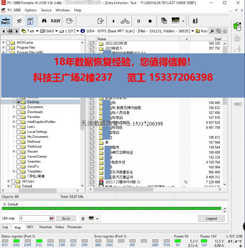 解决方案:收到硬盘后,我们使用专业的SSD恢复工具ACE PC3000 SSD,虚拟重建编译器,再用PC3000 DE虚拟镜像,成功恢复出客户要的桌面数据!