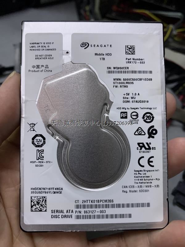 硬盘型号:ST1000LM035-1RK172 SN:WQ950CER FW:RTM2 电路板号:100809471