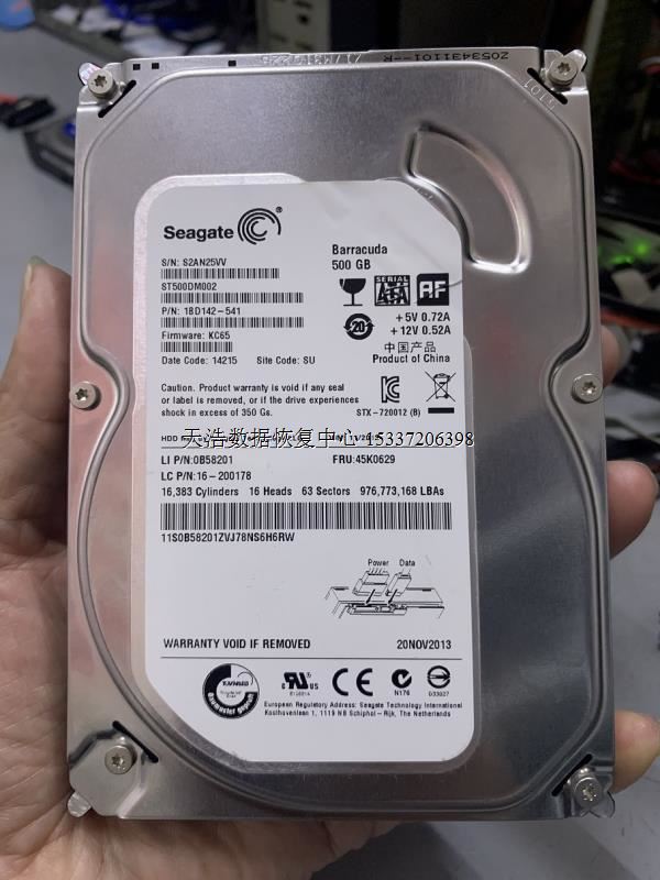 硬盘型号:ST500DM002-1BD142 SN:S2AN25VV FW:KC65 电路板号:100535704