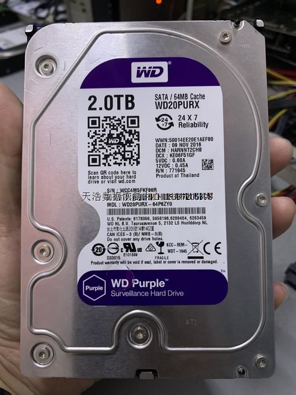 硬盘型号:WD20PURX-64P6ZY0 SN:WCC4M5FKF86R FW:15000B 电路板号:771945-002