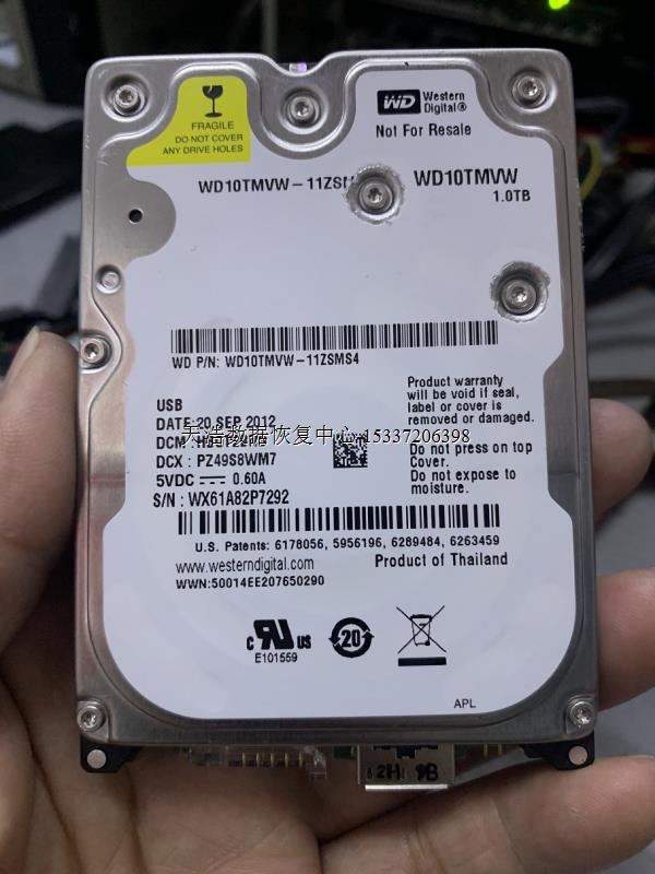 故障现象:西数Elements 1T原装移动硬盘,通电敲盘。