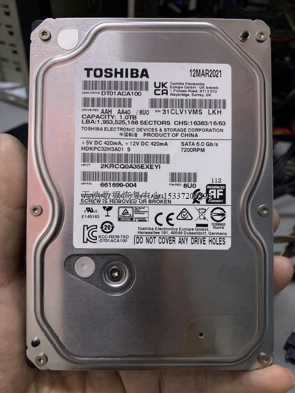 TOSHIBA DT01ACA100开盘恢复成功案例