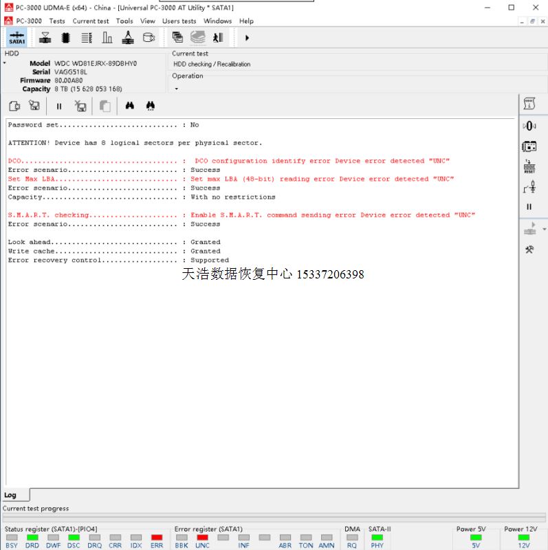 故障现象:西数8T紫盘,全盘坏道,由于这种盘目前所有数据恢复设备都不支持固件处理,所以同行发过来让我们帮忙处理!