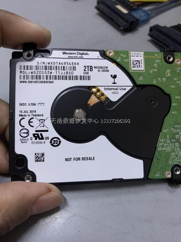 故障现象:WD My Passport 2T原装移动硬盘,摔过,通电敲盘。
