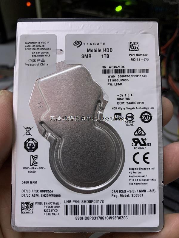 硬盘型号:ST1000LM035-1RK172 SN:WQ95ZTDK FW:LFM1 电路板号:100809471