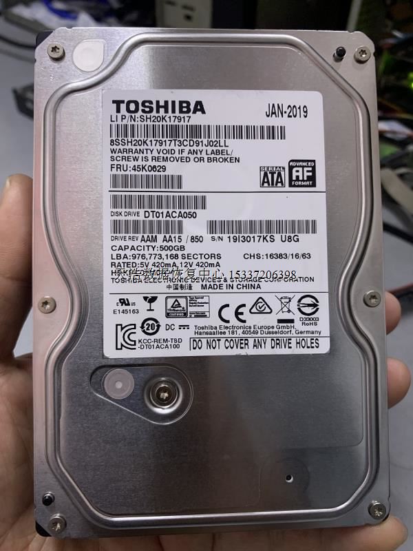 硬盘型号:TOSHIBA DT01ACA050 SN:19I3017KS FW:MS1OA850 电路板号:PF00035