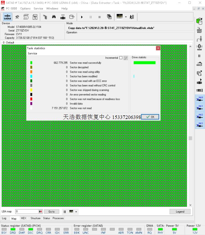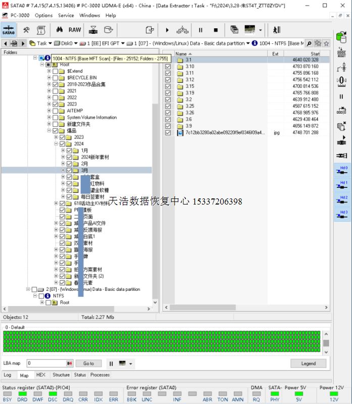 原板处理固件后,硬盘正常认盘,数据区前后都能正常访问,DE镜像,数据完美恢复!