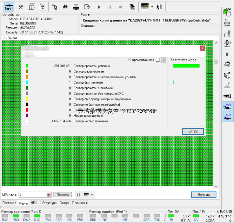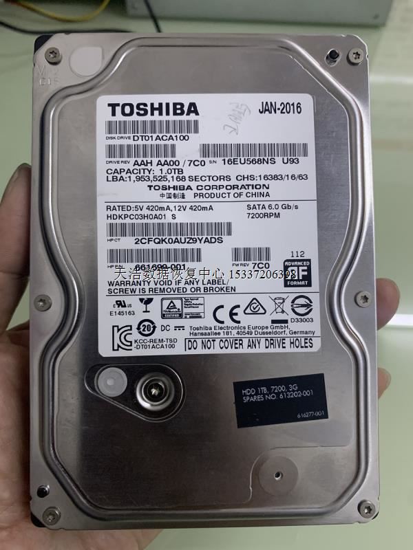 TOSHIBA DT01ACA100开盘恢复成功案例