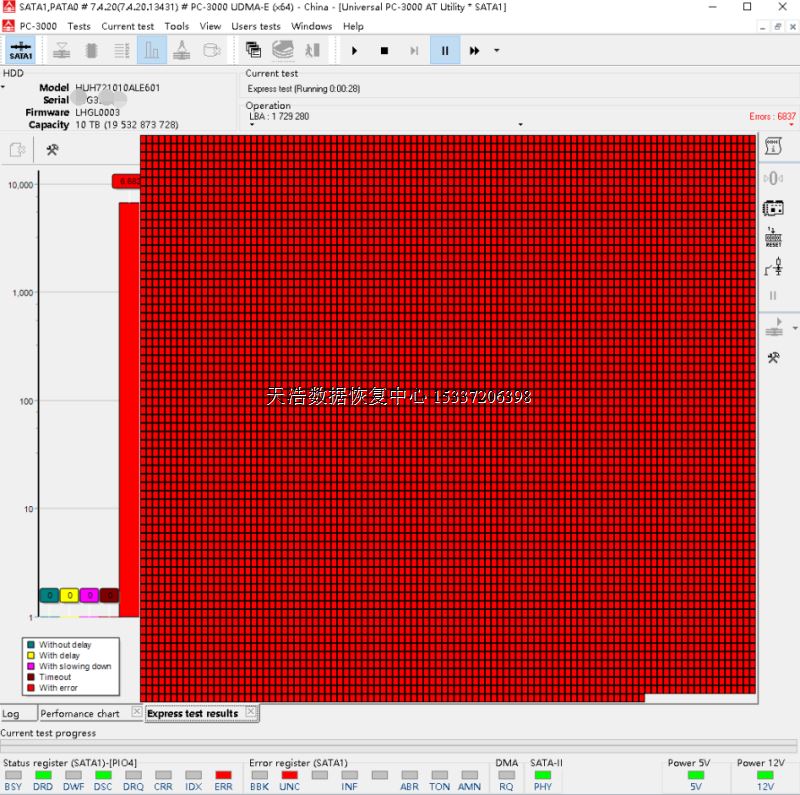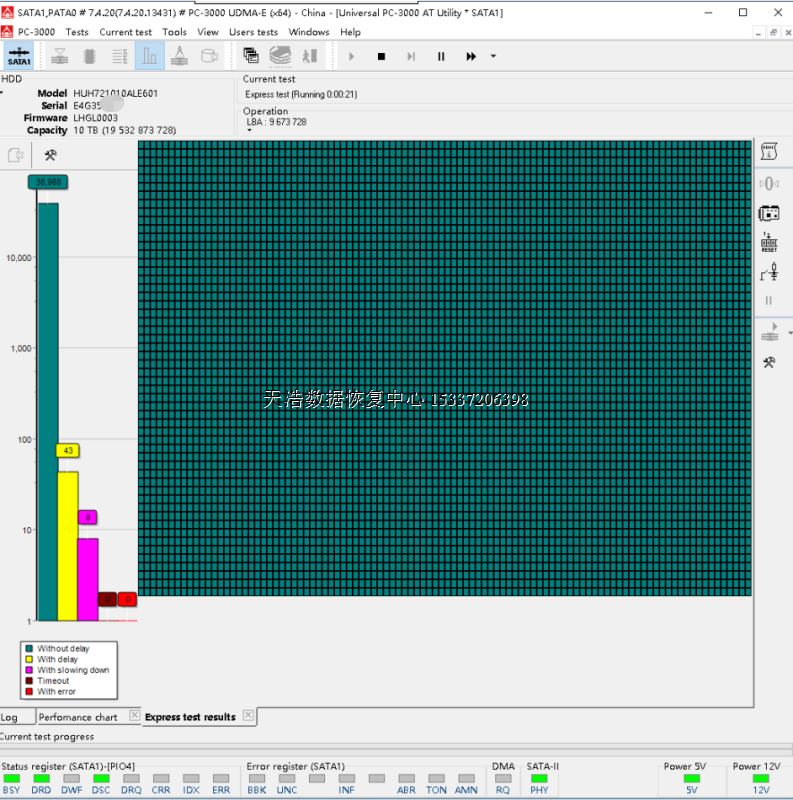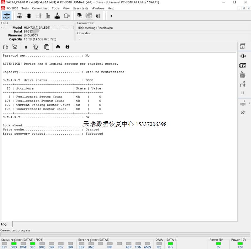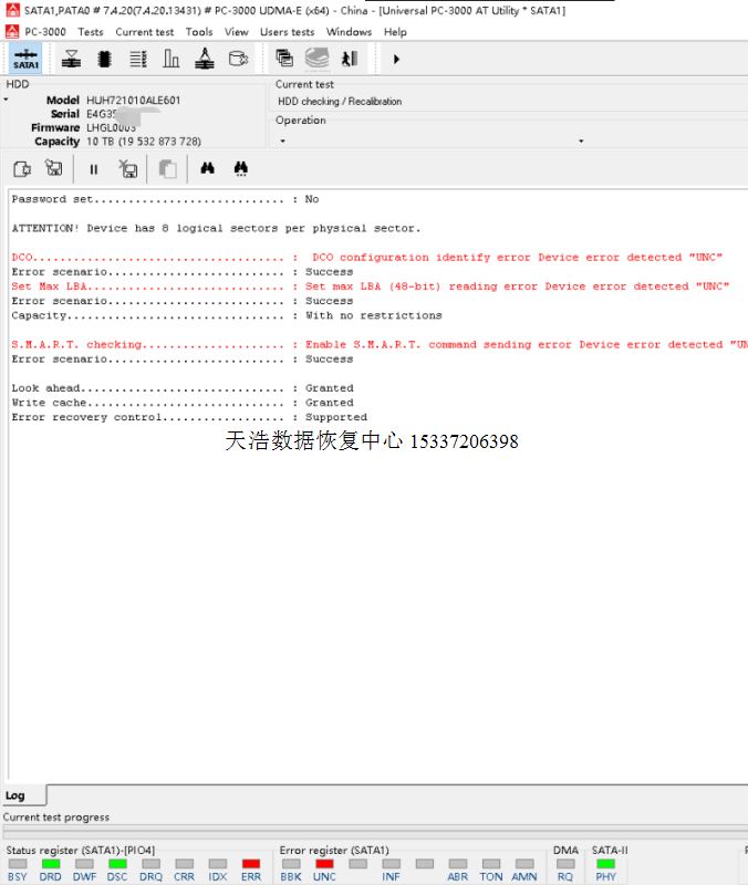 故障现象:日立10T,全盘坏道,由于这种盘目前所有数据恢复设备都不支持固件处理,所以同行发过来让我们帮忙处理!