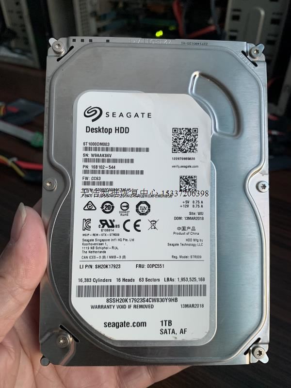 硬盘型号:ST1000DM003-1SB102 SN:W9AAKS6V FW:CC63 电路板号:100774000