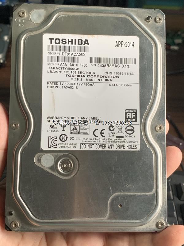 硬盘型号:TOSHIBA DT01ACA050 SN:4438R8YAS FW:MS1OA750 电路板号:PF00035
