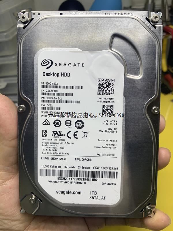 硬盘型号:ST1000DM003-1SB102 SN:Z9A5VKXJ FW:CC62 电路板号:100774000