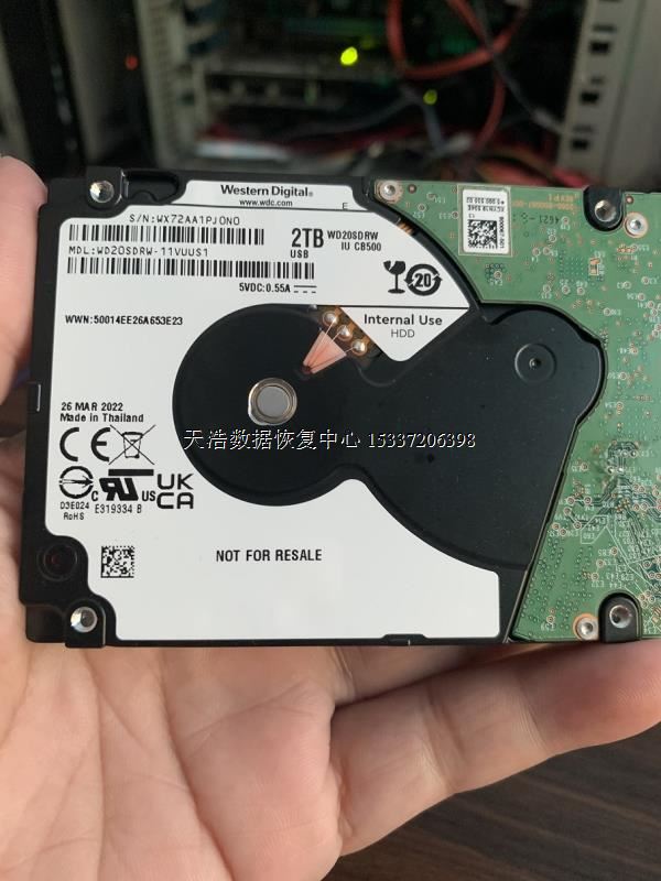 故障现象:WD My Passport 2T原装移动硬盘,不小心从桌上掉到地上,再通电敲盘!